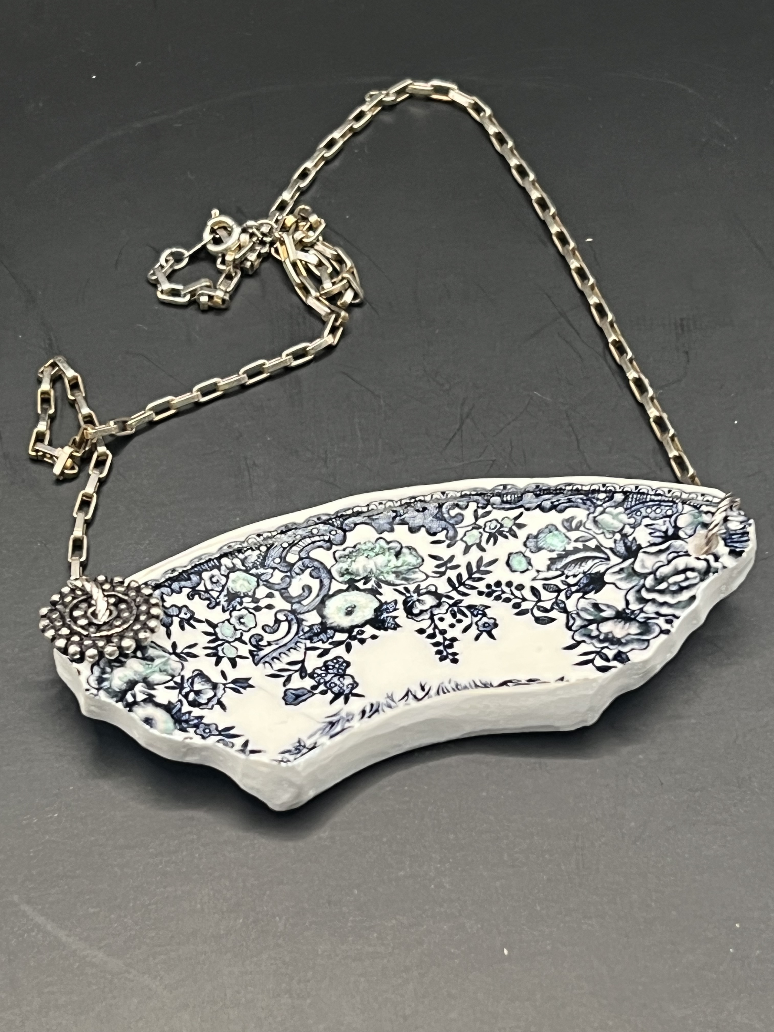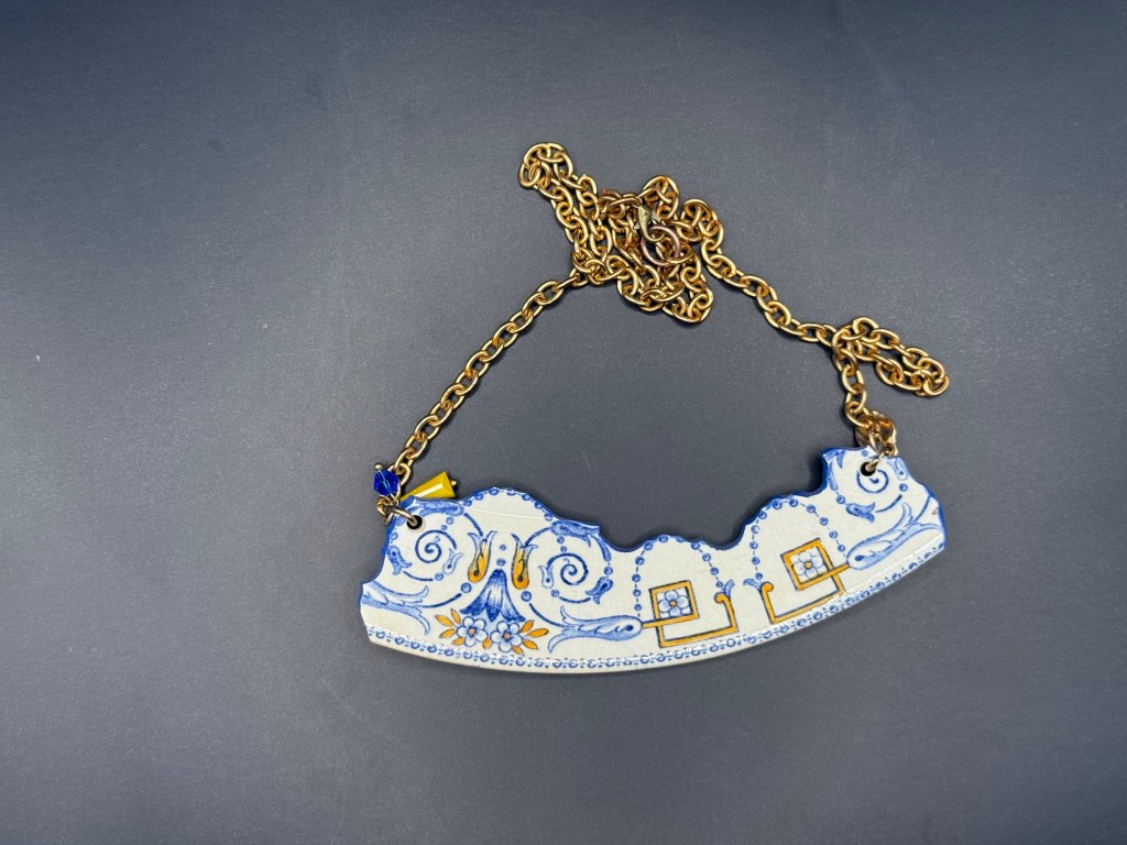 Inspirés des célèbres cols Claudine, les colliers de la collection Cols Claudette sont de véritables pièces décoratives, façonnées en céramique upcyclée. Leur design délicat et travaillé rappelle les dentelles d’autrefois, pour un bijou audacieux, poétique et chargé de caractère.