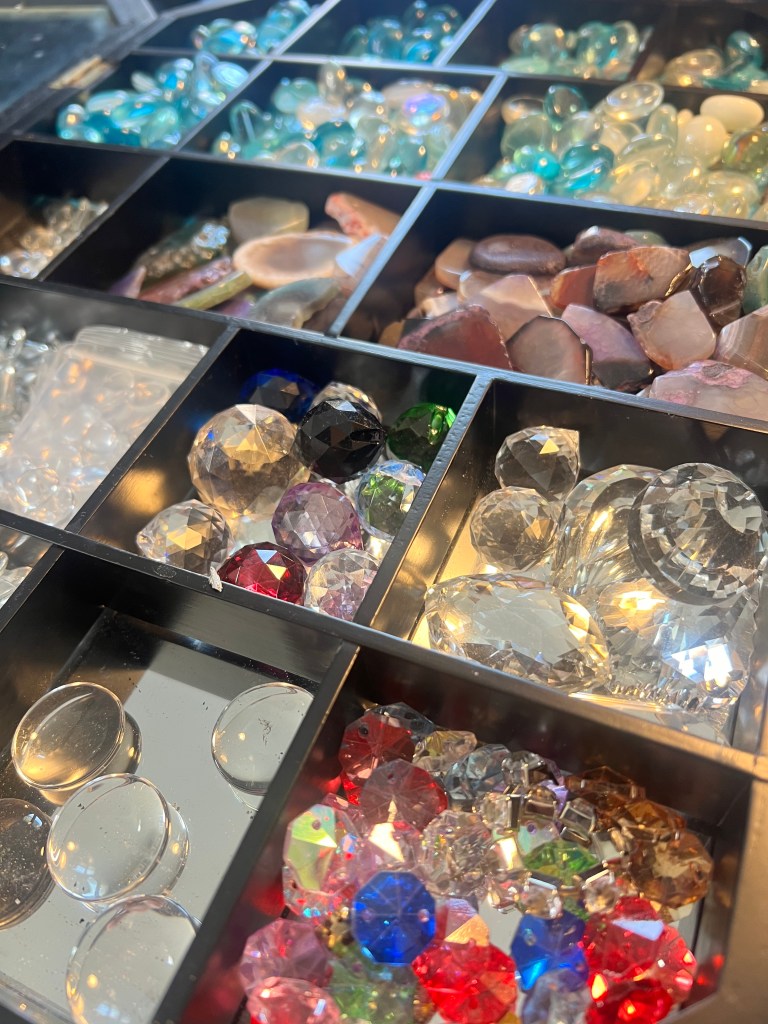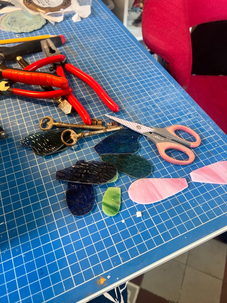 Entre savoir-faire artisanal et éclats colorés, chaque création devient une présence singulière, à la fois décorative et intemporelle. Parce que la lumière aussi mérite d’être façonnée. Chaque fois que possible, j’utilise des matériaux ressourcés; fonds d’assiettes, morceau de verre…