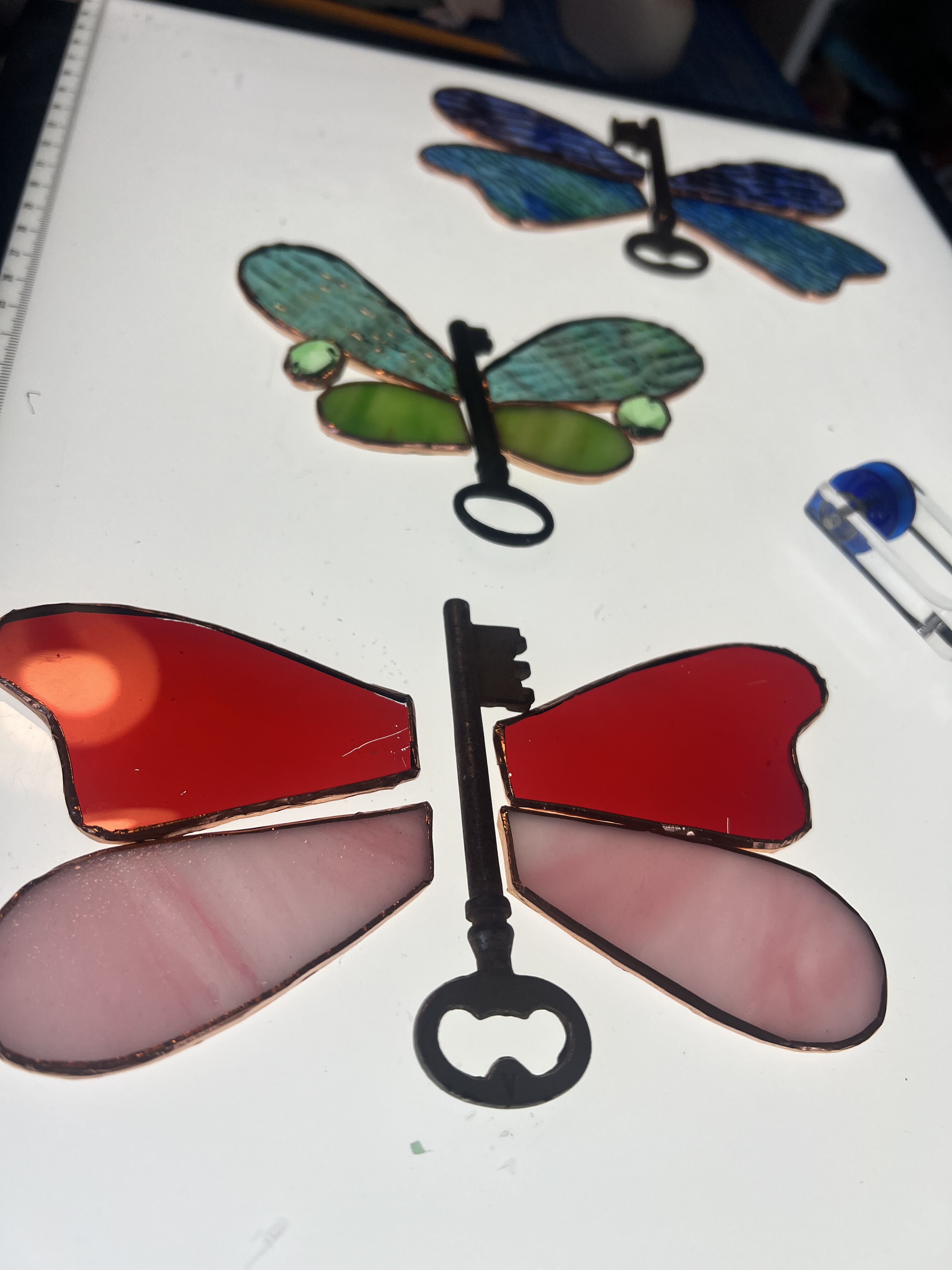 Les objets, accessoires, bijoux de jardin et décorations en vitrail, réalisés selon la technique Tiffany, jouent avec la transparence et les couleurs pour donner vie à des créations lumineuses. Chaque pièce est façonnée à la main, assemblant des verres soigneusement choisis pour capter, filtrer et sublimer la lumière naturelle.