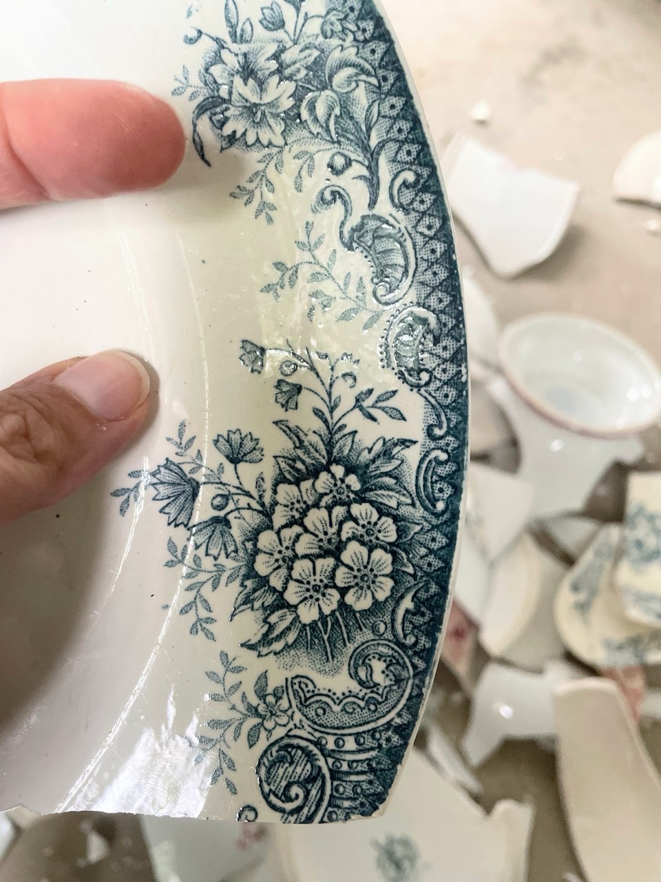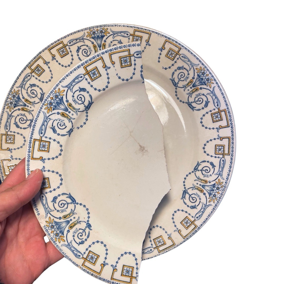 Avec 1 Brin 2 folie (1B2F) j’ai à coeur de redonner vie à des objets du passé, usés, abandonnés, et surtout, inutilisables pour leur usage d’origine. Aussi, en dehors de la collection « Lysiane et Jean », qui s’appuie sur des pièces « souvenirs », aucune pièce en céramique n’est réalisée à partir de vaisselle en état d’être utilisée. Soucieuse et consciente de leur valeur historique, et du travail réalisé sur chacune de ces pièces, notamment la vaisselle, je privilégie les pièces cassées, parfois déjà jetées ou Inutilisables.